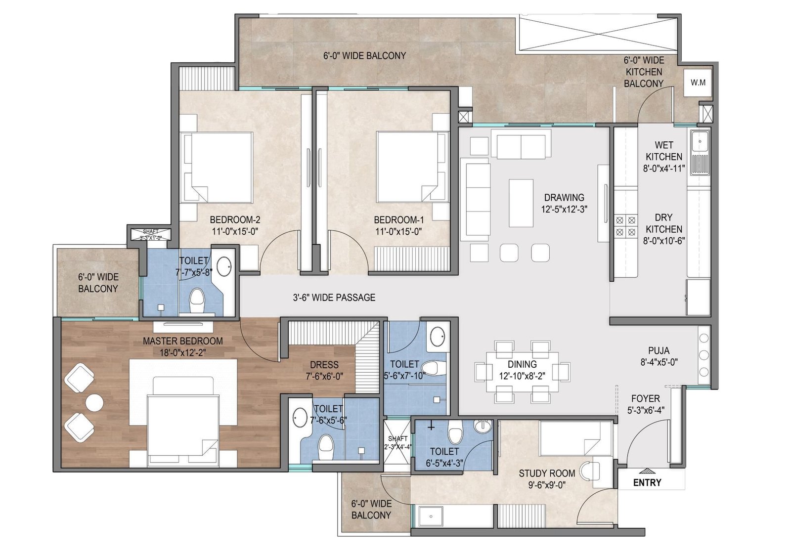 - 3BHK + Study: Flexible designs catering to those with diverse lifestyle needs.