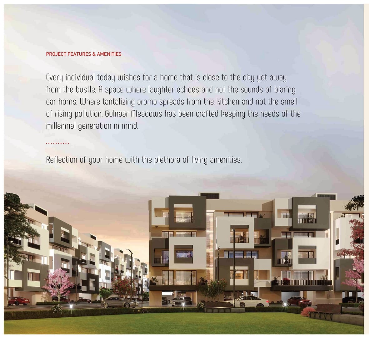 A Home that shines with the warmth of sunshine, the corners which speak of you, the noise of kids’ laughter and most importantly the feeling of being at ease, Gulnaar Meadows is perfectly designed to offer it all for the rest of your lives.