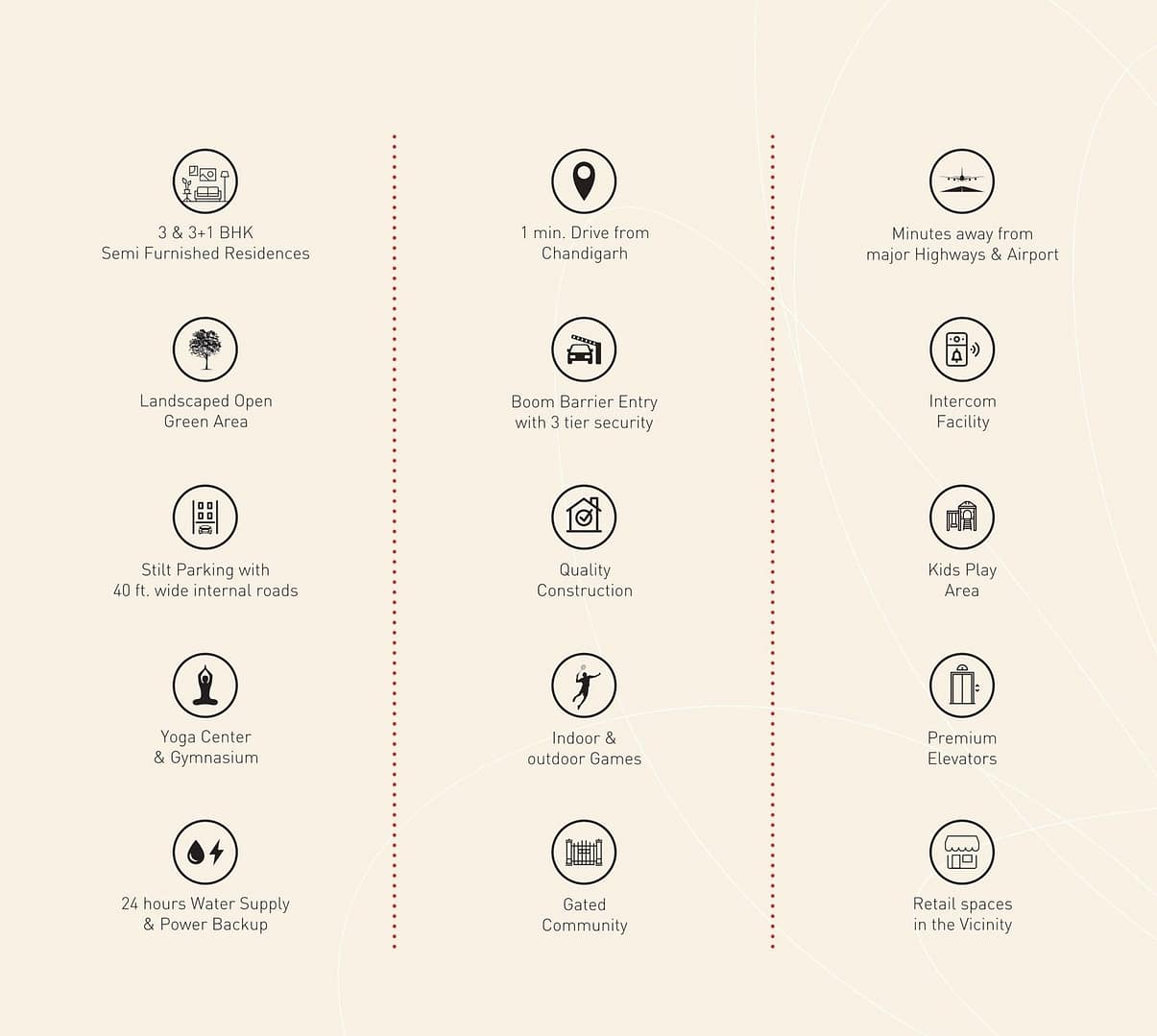 The premium and modern architecture offering 3 & 3+1 low rise housing is everything that you require for a comfortable living. is where everyday will be a new beginning of happiness. Get mesmerized in the stunning facade and Shivalik Hills view from your abode. The premium project with only 180 units will truly define the concept of “Home”. Every space is made from the best construction material and equipped with all the necessary amenities, giving you an elevated experience of living with comfort and safety.