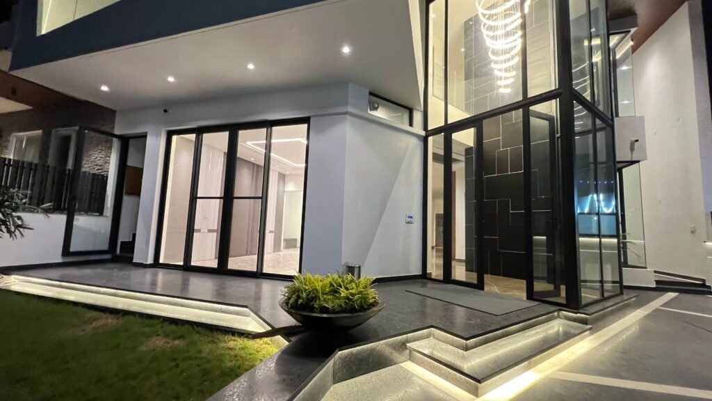 With its innovative double duplex design, the villa is Vastu-oriented, ensuring a harmonious and positive energy flow throughout the house. Inside, there are five large bedrooms, each with an ensuite bathroom, ideal for families who require privacy and ample living space.