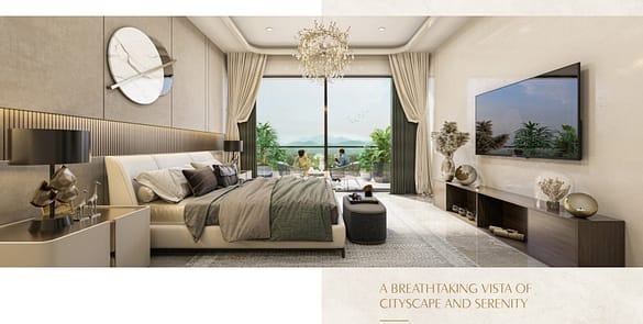 As the grand towers rise to touch the heavens, a promise of elevated living hangs in the air. The moment one enters, the abundance of natural light streaming through the ceiling-to- floor windows is like a warm embrace. It isn’t just sunlight; it is the very essence of harmony and space, weaving through the large open living areas like a symphony.