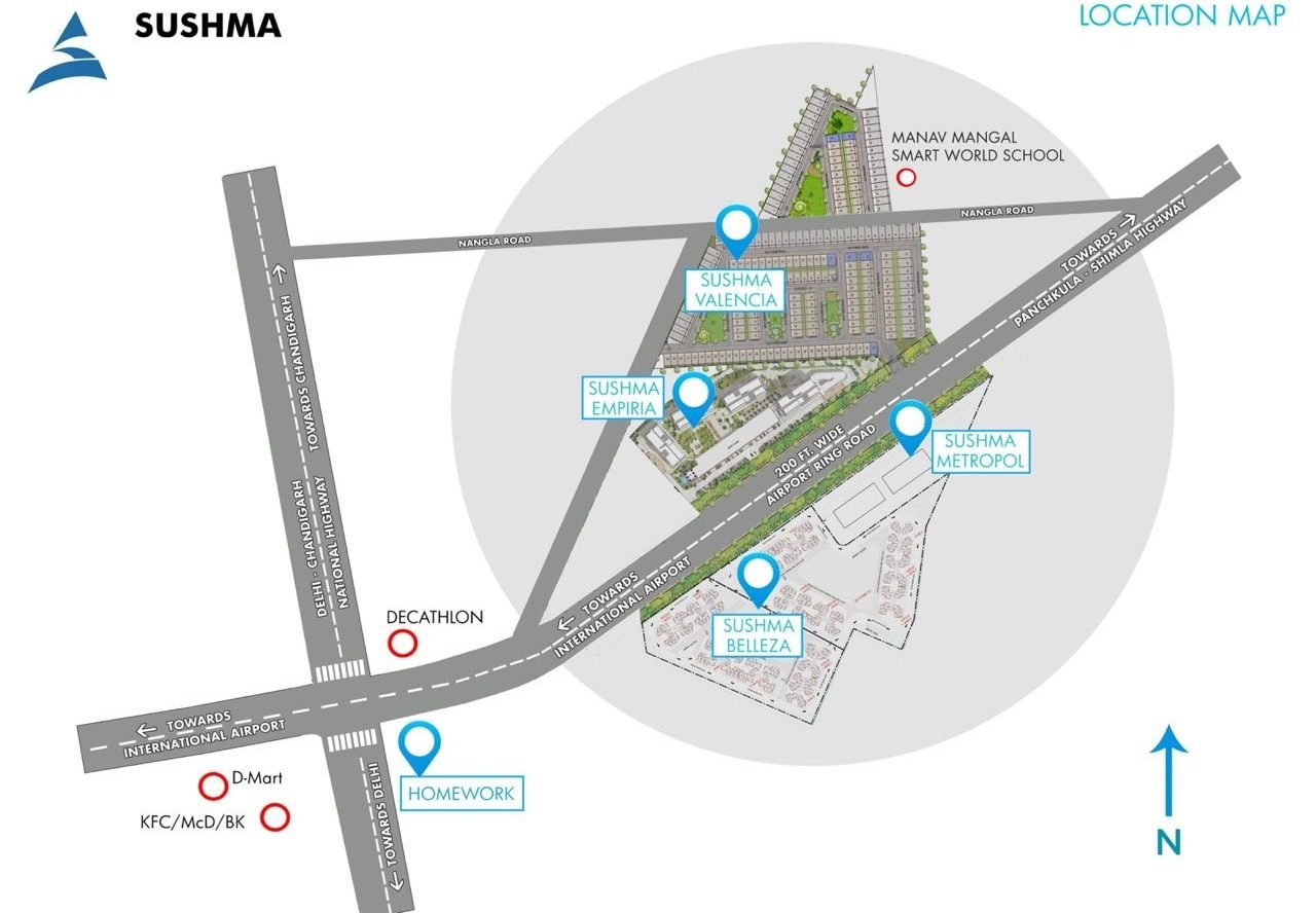 Sushma Belleza is a luxury apartment township built to the highest standards in the gold series. It is a component of Sushma Downtown, a combined city consisting of two residential and two commercial developments in Zirakpur. Spread over 70 acres, the Downtown assures high standards of living and enjoyment for its residents and visitors.